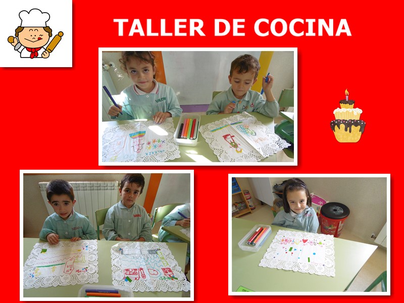 : muy ilusionados y contentos hemos diseñado nuestro propio delantal para preparar las ricas recetas que vamos a elaborar en nuestro "Taller de Cocina".